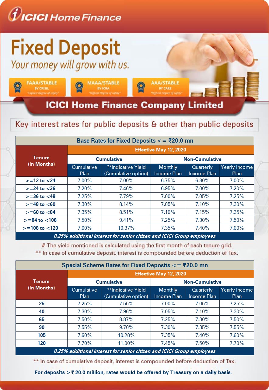 ICICI Home Finance Fixed Deposit rates with effect from May 12, 2020 - Get Monthly interest